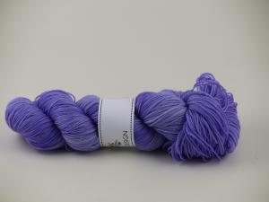 100g handfärgat mjukt merinogarn med fin glans i ljust hyacintlila.