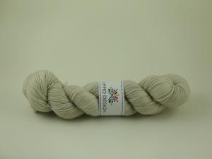 100g handfärgat mjukt merinogarn med fin glans i en ljus beigegrå.