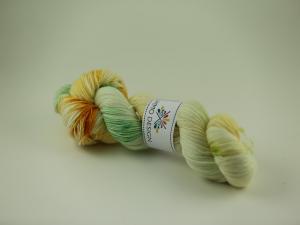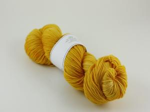 100g handfärgat mjukt merinogarn med fin glans i solrosgult.